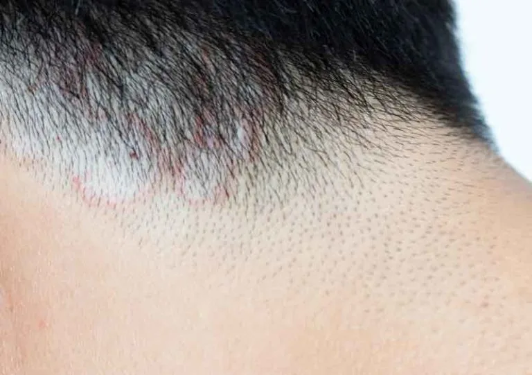 - Zonas del cuero cabelludo con pequeños puntos negros donde el pelo se ha caído.